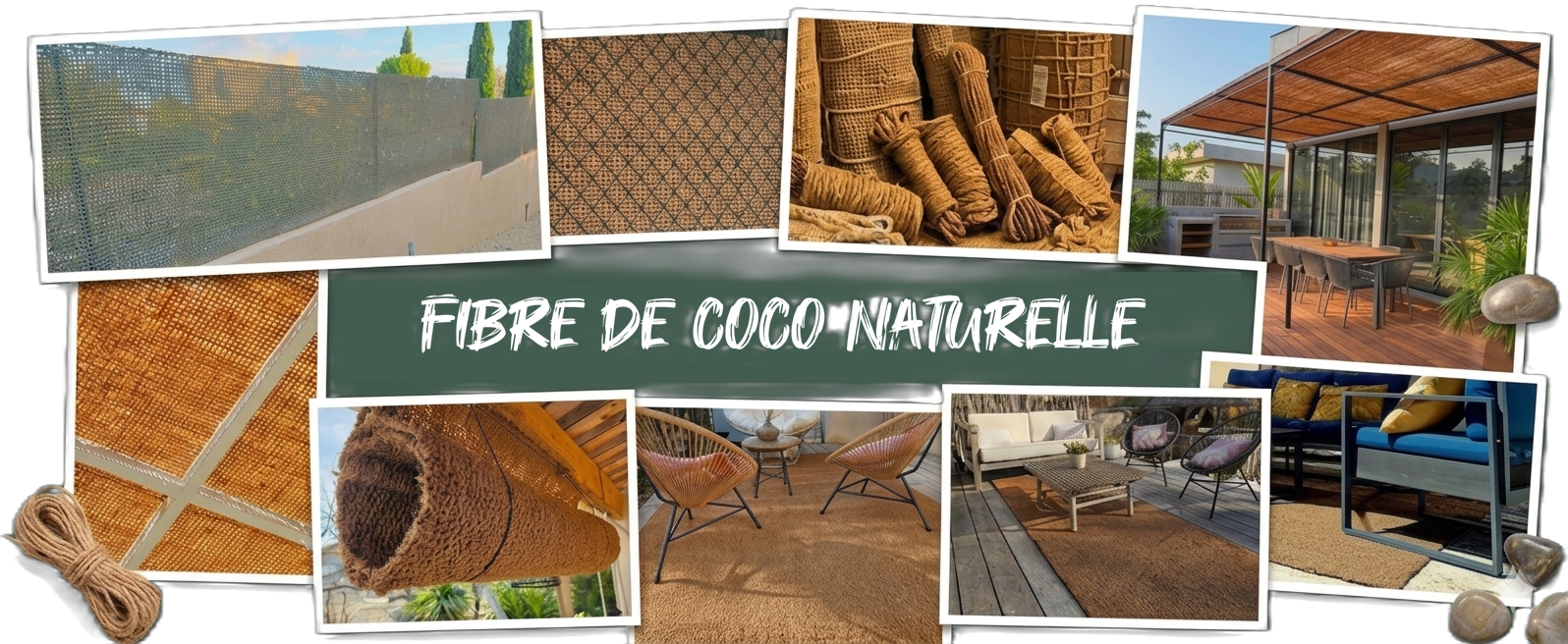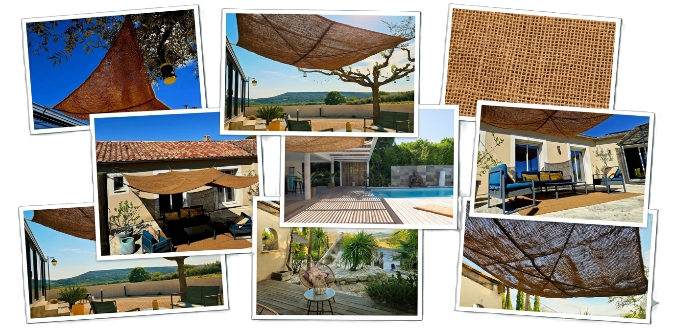 Nous vous proposons des voiles d’ombrage en fibre de coco 100 % naturelle